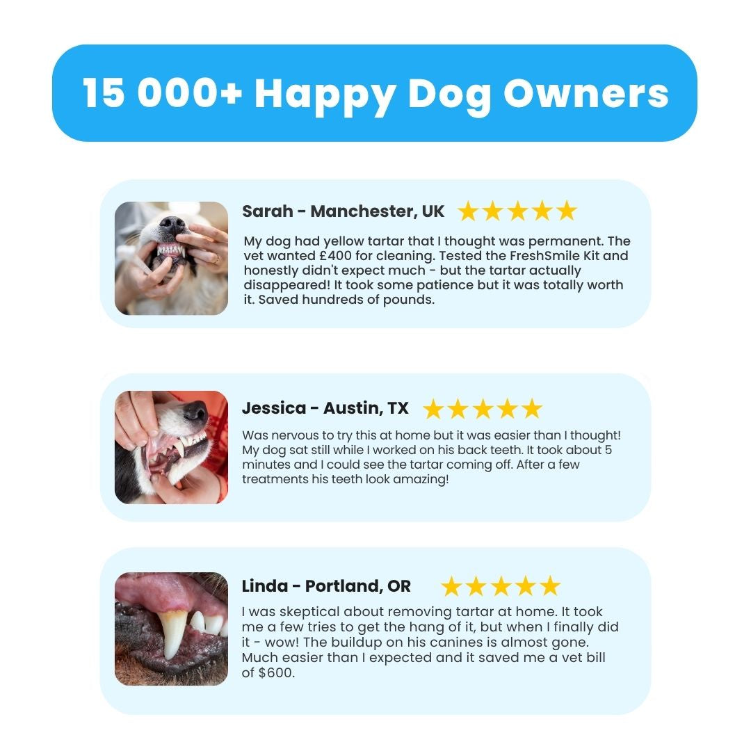 The result is cleaner teeth, fresher breath, and a happier dog – without stress or pain.