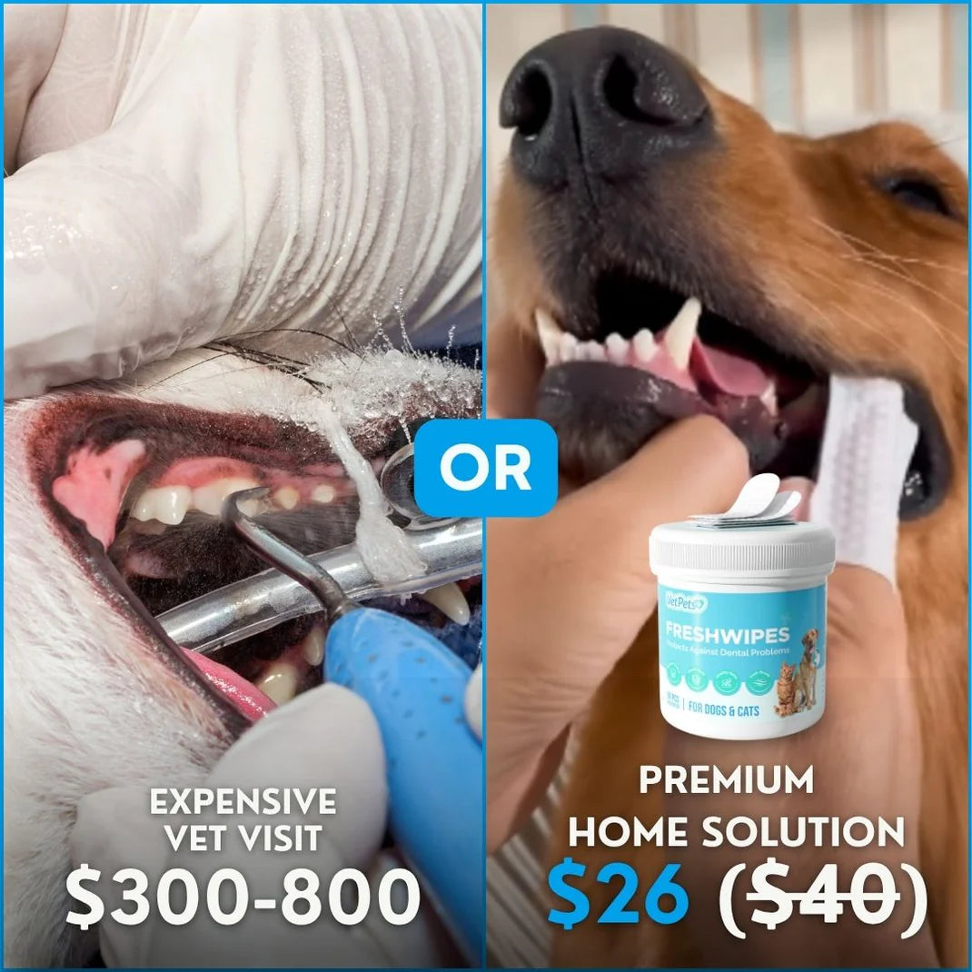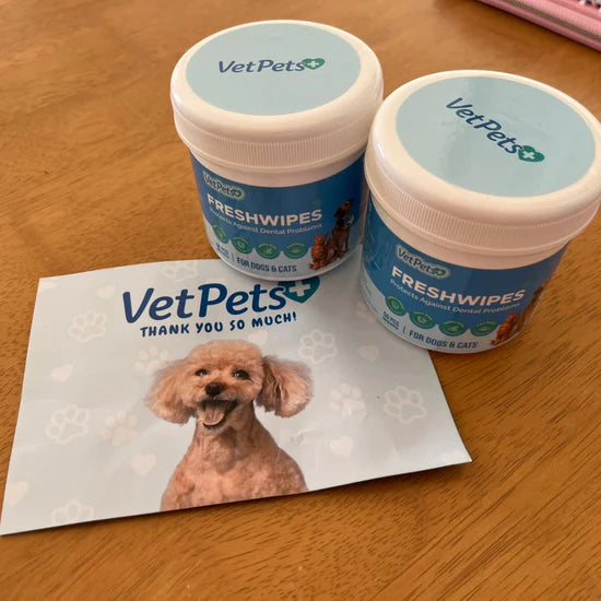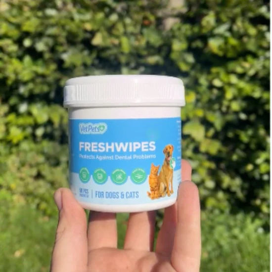 FreshWipes from VetPets give you an easy way to care for your dog’s oral health – without vet visits, stress, or uncertainty.