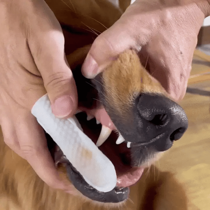 - Gently rub along your pet’s teeth and gums in circular motions.